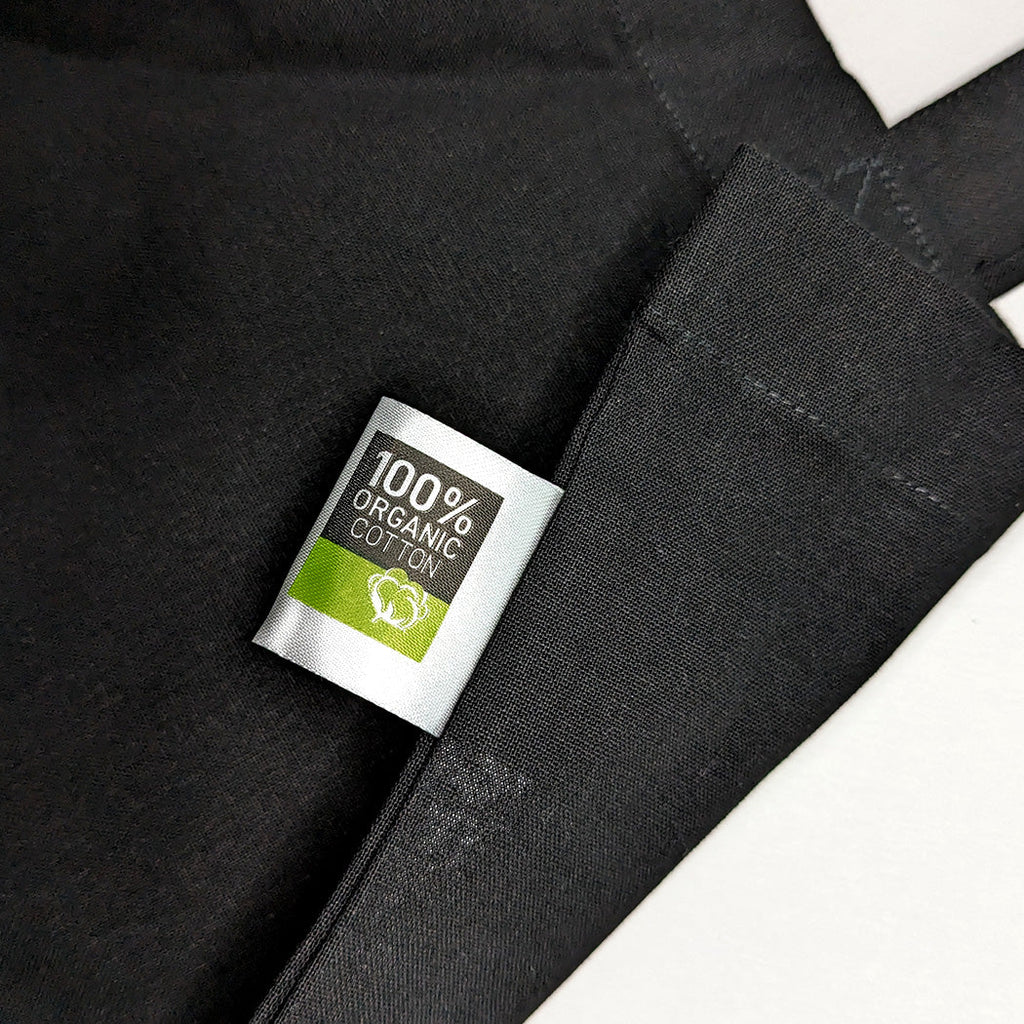Black cotton tote bag with TDF print. The bag is fair trade, 100% organic cotton, size A3, original, has an eye-catching design and is full of urban chic. Perfect for grocery shopping, carrying books to school, and a clear fashion statement.