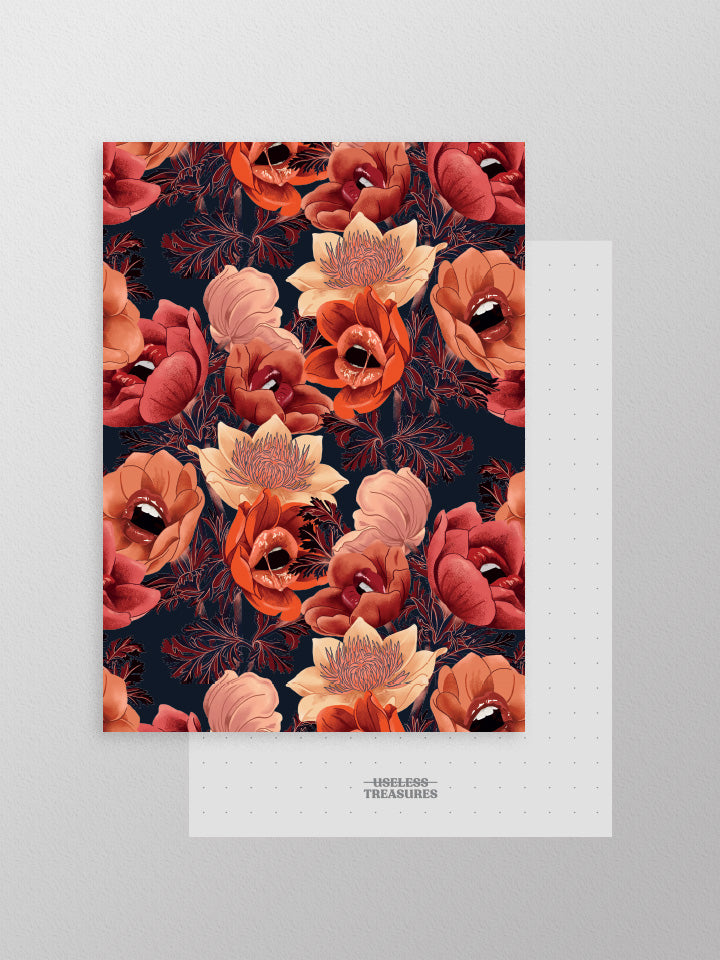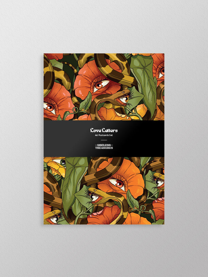 Four postcards with four different designs. Size A6 (10X15cm), Printed on a beautiful light grey recycled 300gr paper. The postcards are dotted on the back for neat and easy writing. Made for love letters only.