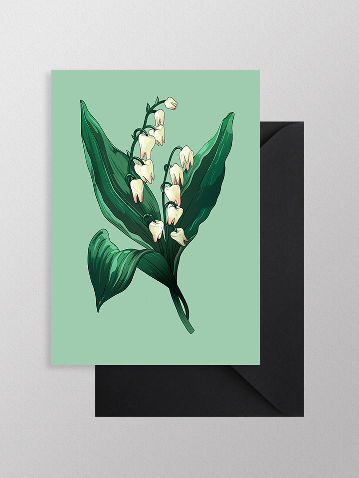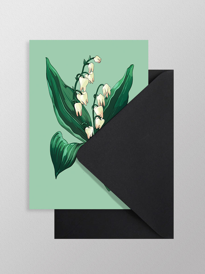 A6 postcard with surreal floral design. Size 10X15cm. Printed on sturdy recycled 300gr paper. The postcard is dotted on the back for neat and easy writing. It is sold with a black paper envelope and is made for love letters only.