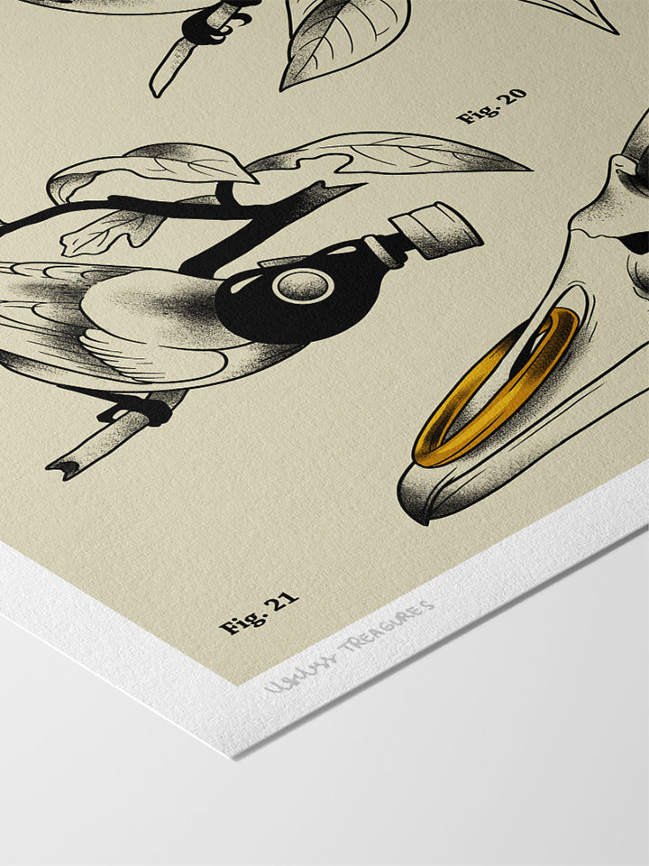 Our original art prints are handcrafted with whimsy and care. Printed on 320gsm Masterclass Smooth Matte Cotton paper using archival, non-fading inks, each piece is built to last a lifetime—and then some (we’re talking 70+ years). Every print is a rebellious little masterpiece, signed and numbered to make it truly one-of-a-kind.