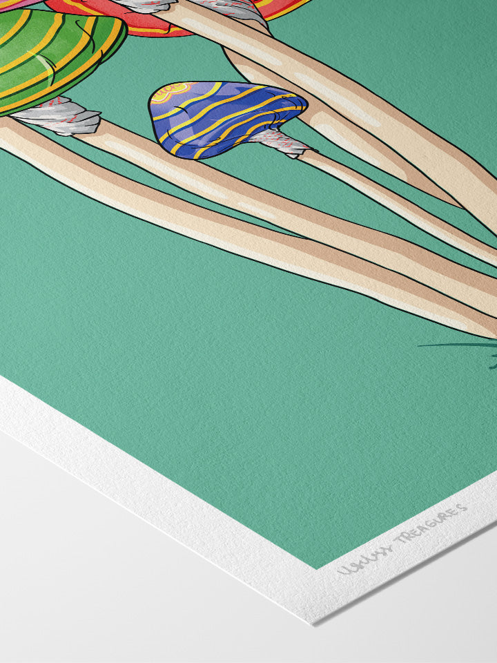 Our original art prints are handcrafted with whimsy and care. Printed on 320gsm Masterclass Smooth Matte Cotton paper using archival, non-fading inks, each piece is built to last a lifetime—and then some (we’re talking 70+ years). Every print is a rebellious little masterpiece, signed and numbered to make it truly one-of-a-kind.