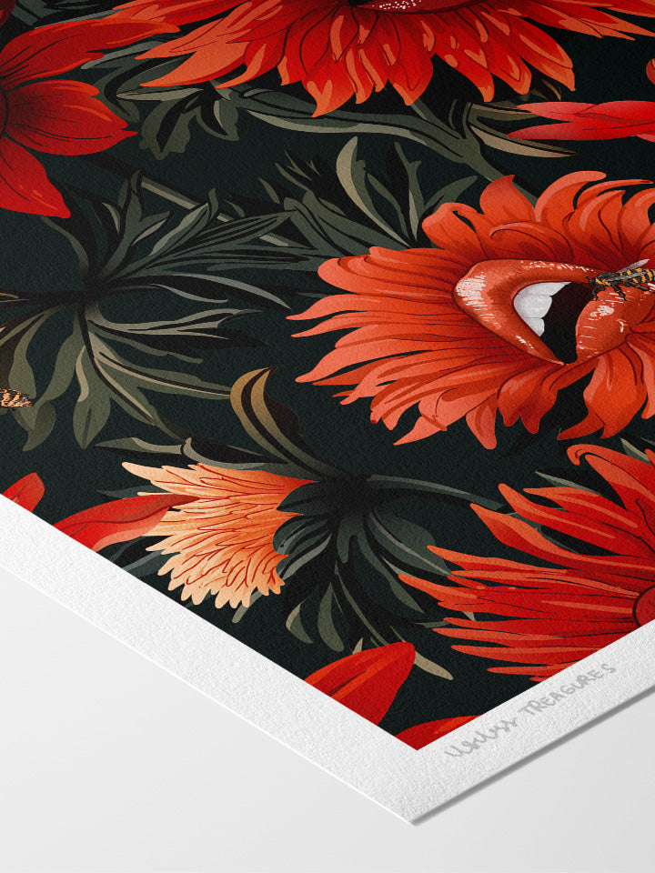 Our original art prints are handcrafted with whimsy and care. Printed on 320gsm Masterclass Smooth Matte Cotton paper using archival, non-fading inks, each piece is built to last a lifetime—and then some (we’re talking 70+ years). Every print is a rebellious little masterpiece, signed and numbered to make it truly one-of-a-kind.